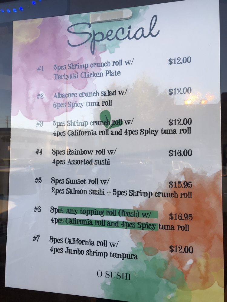 Welcome to O Sushi, where the art of Japanese cuisine comes alive in a cozy setting in Los Angeles. Located at 11082 Santa Monica Blvd, this casual eatery invites you to enjoy a delightful selection of sushi and rolls, perfect for both lunch and dinner.